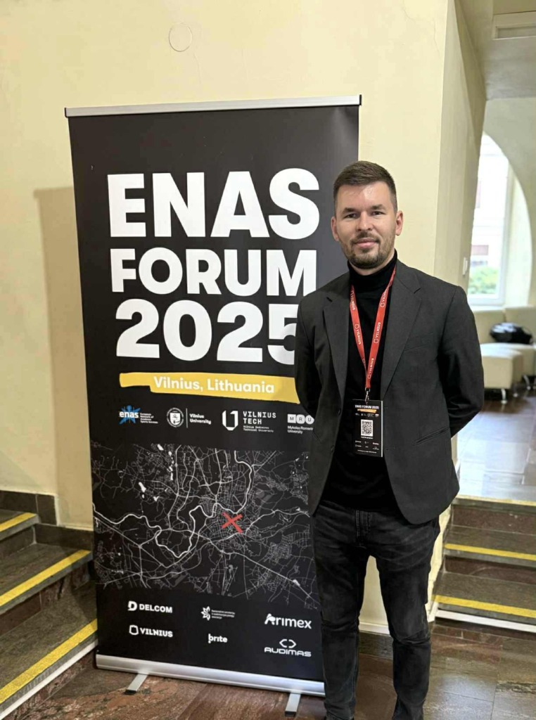 Lapkričio pradžioje Vilniuje vyko „ENAS Forum 2025“ – vienas svarbiausių Europos akademinio sporto renginių, suburiantis universitetų sporto centrų vadovus iš visos Europos. KTU Sporto ir sveikatingumo centrui renginyje atstovavo centro vadovas Vilius Vaitkevičius.